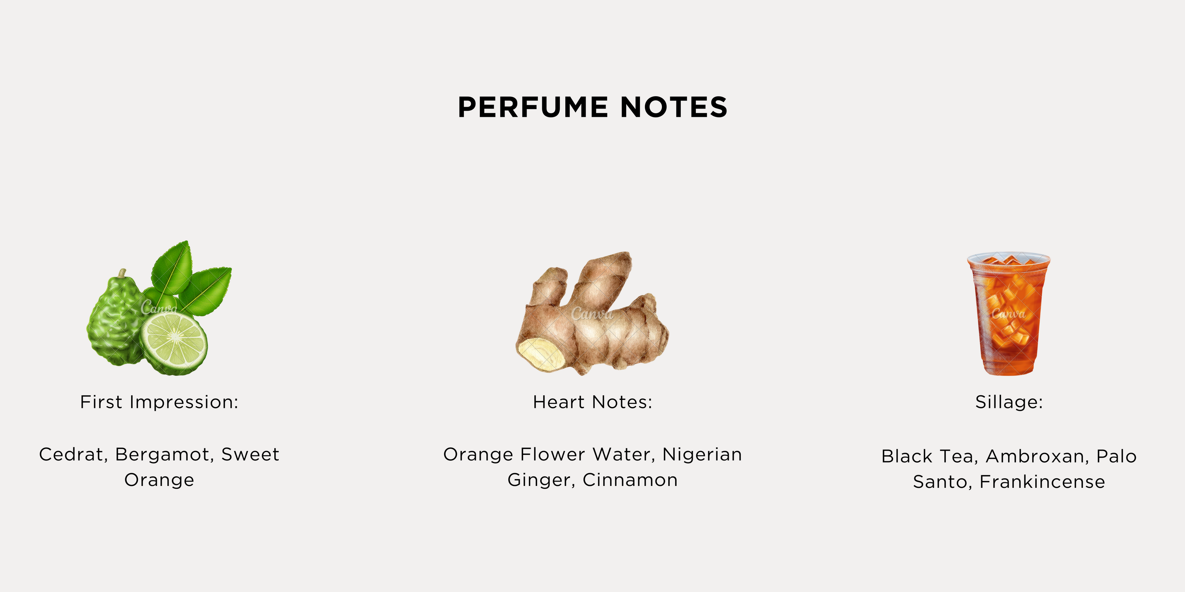 - HEART NOTES: Orange Flower Water, Nigerian Ginger, Cinnamon